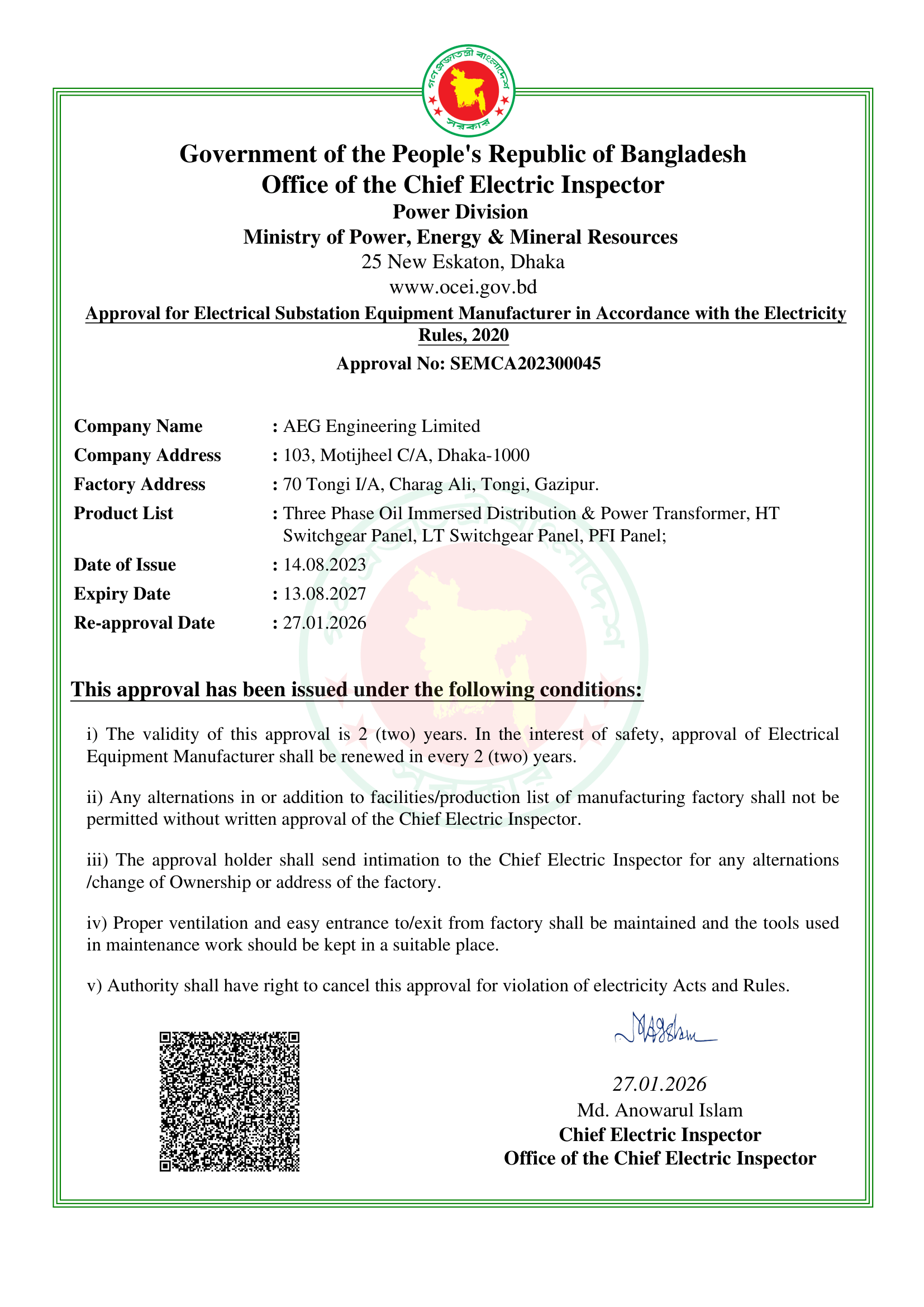 Present in Bangladesh since the 1930s and officially established in 1963, AEG Engineering Ltd. operates a fully equipped Head Office and Factory in Dhaka, along with a branch office in Chittagong. The company provides comprehensive engineering solutions across the country, specializing in marketing high-quality AEG products, manufacturing switchgear panels, distribution boards, and reactive power compensation systems up to 1100 volts.